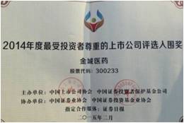 2014年度最受投資者尊重的上市公司評選入圍獎