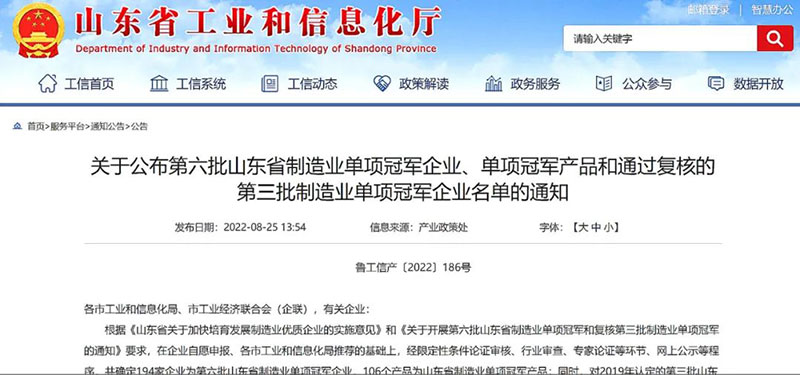 據(jù)了解,此次評審認定是為健全完善全省制造業(yè)優(yōu)質(zhì)企業(yè)梯度培育體系建設工作,深入推進產(chǎn)業(yè)基礎高級化和產(chǎn)業(yè)鏈現(xiàn)代化,根據(jù)《山東省關(guān)于加快培育發(fā)展制造業(yè)優(yōu)質(zhì)企業(yè)的實施意見》安排部署,經(jīng)企業(yè)自愿申報、各市工業(yè)和信息化局推薦、限定性條件論證審核、行業(yè)審查、專家論證和網(wǎng)上公示,最終對評審認定結(jié)果進行公布。